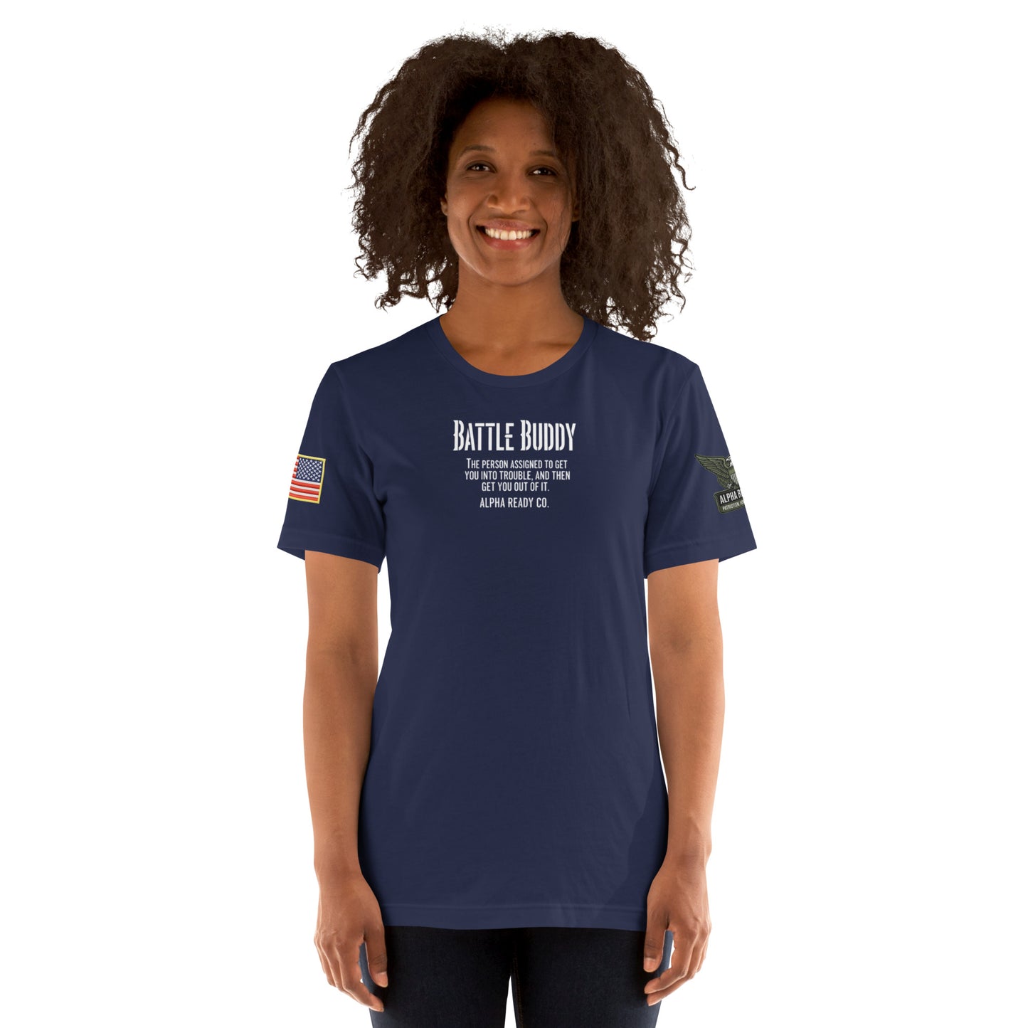 Battle Buddy T-Shirt: Partners in Crime and Survival Your Battle Buddy is more than just a person on a roster; they're the one who has your back, for better or for worse.