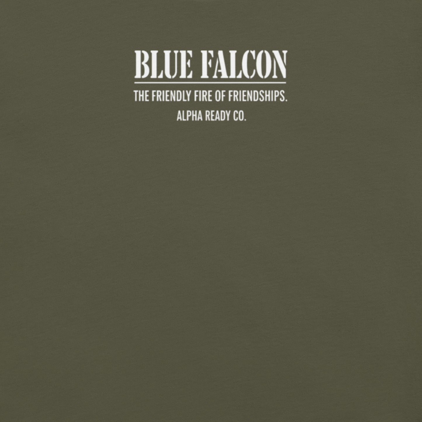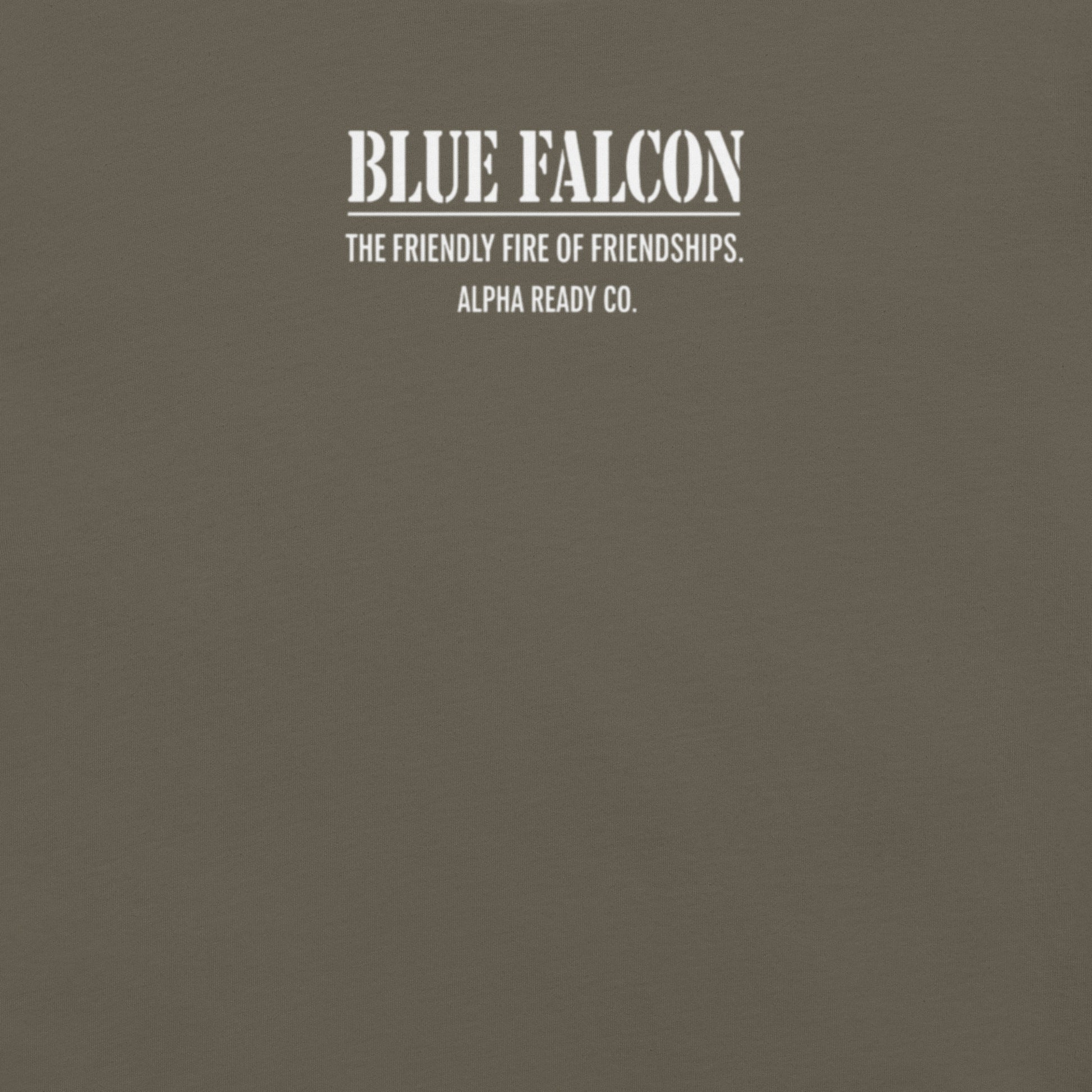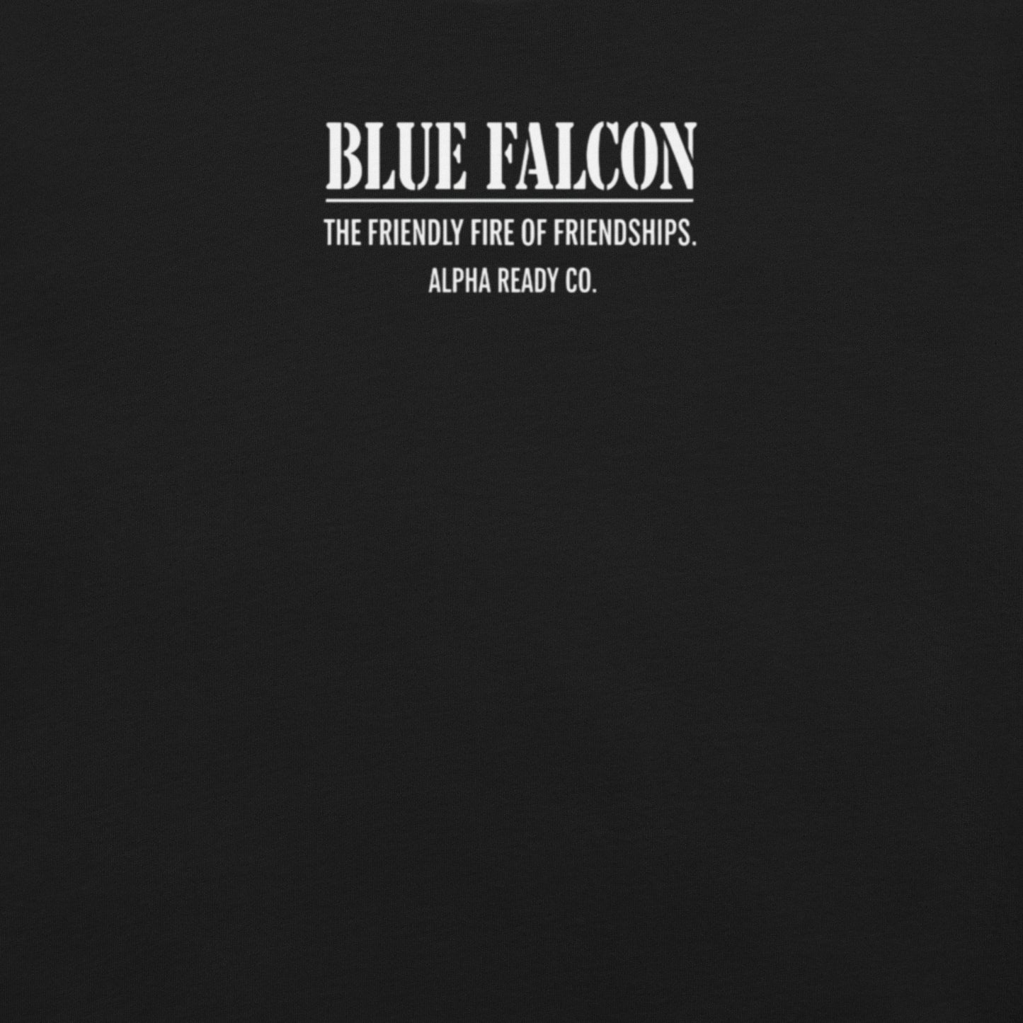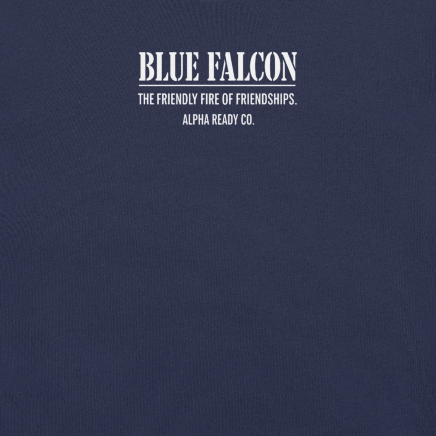 Introducing the Blue Falcon Shirt, a tribute to the hilarious, sometimes frustrating, but always memorable "friendly fire of friendships." With "Blue Falcon" front and center and "The friendly fire of friendships" underneath, this shirt is a knowing wink to those unforgettable moments.