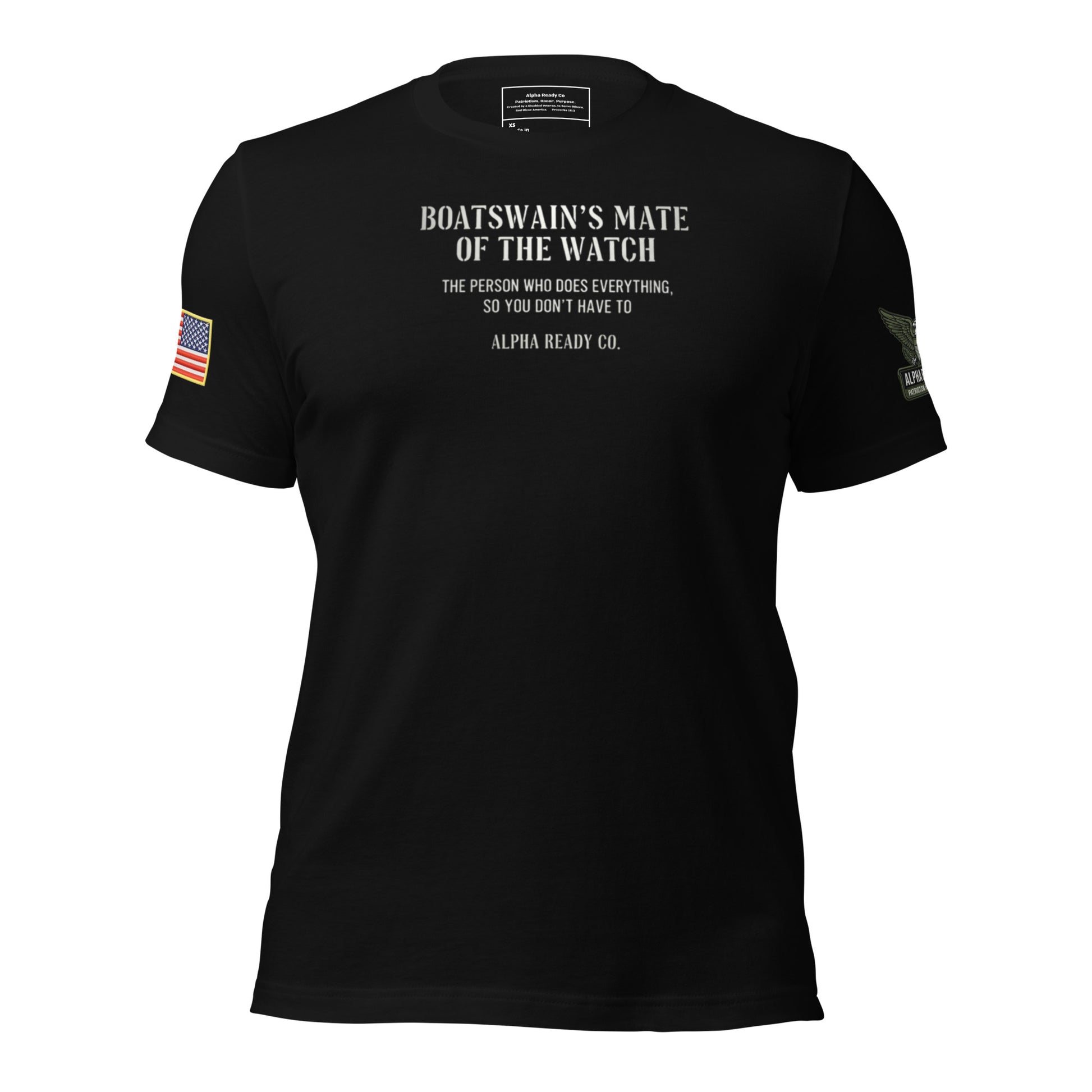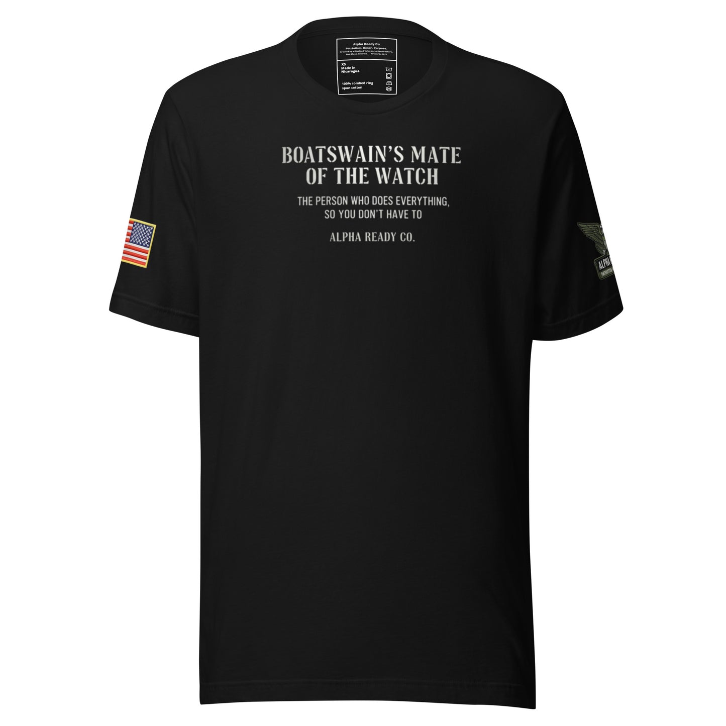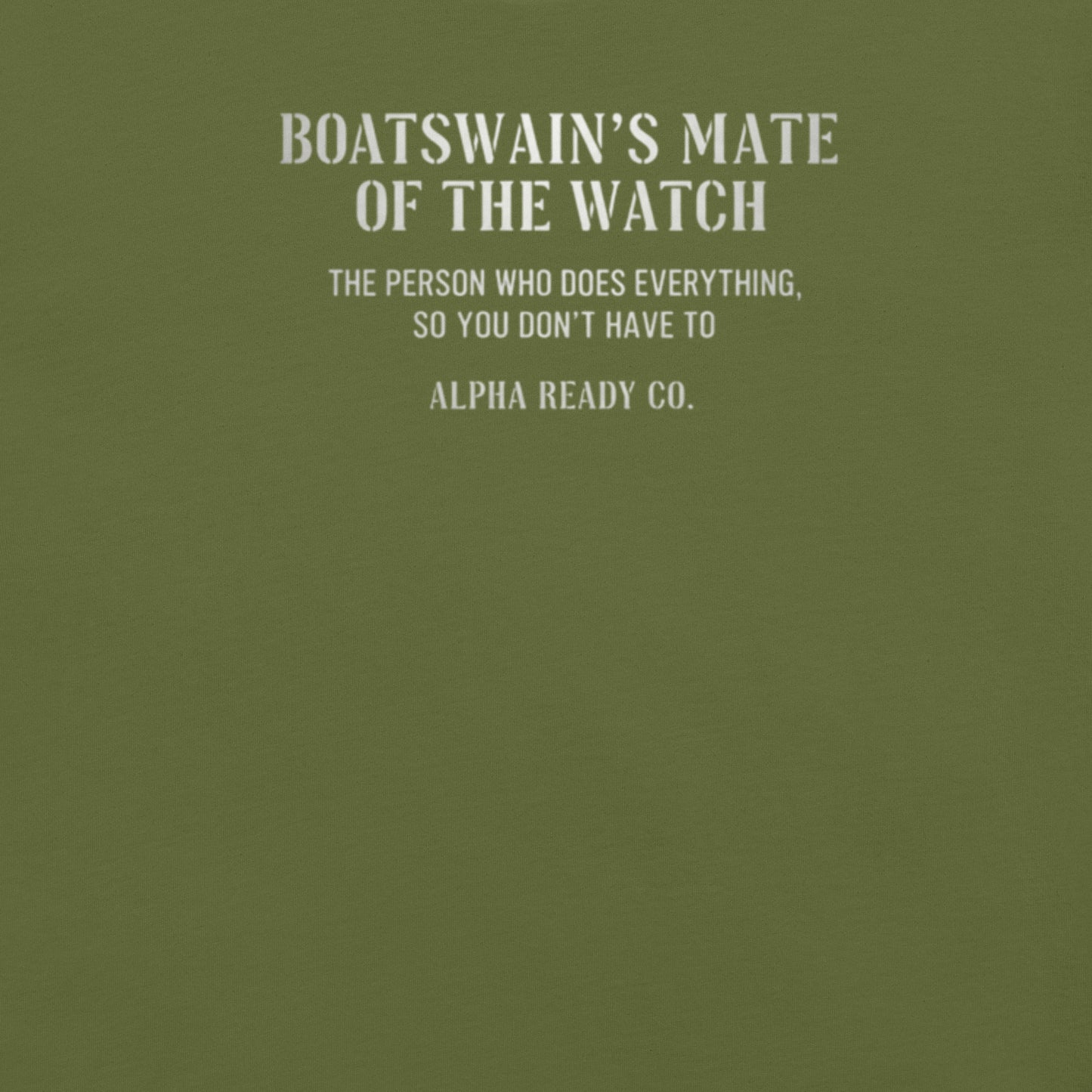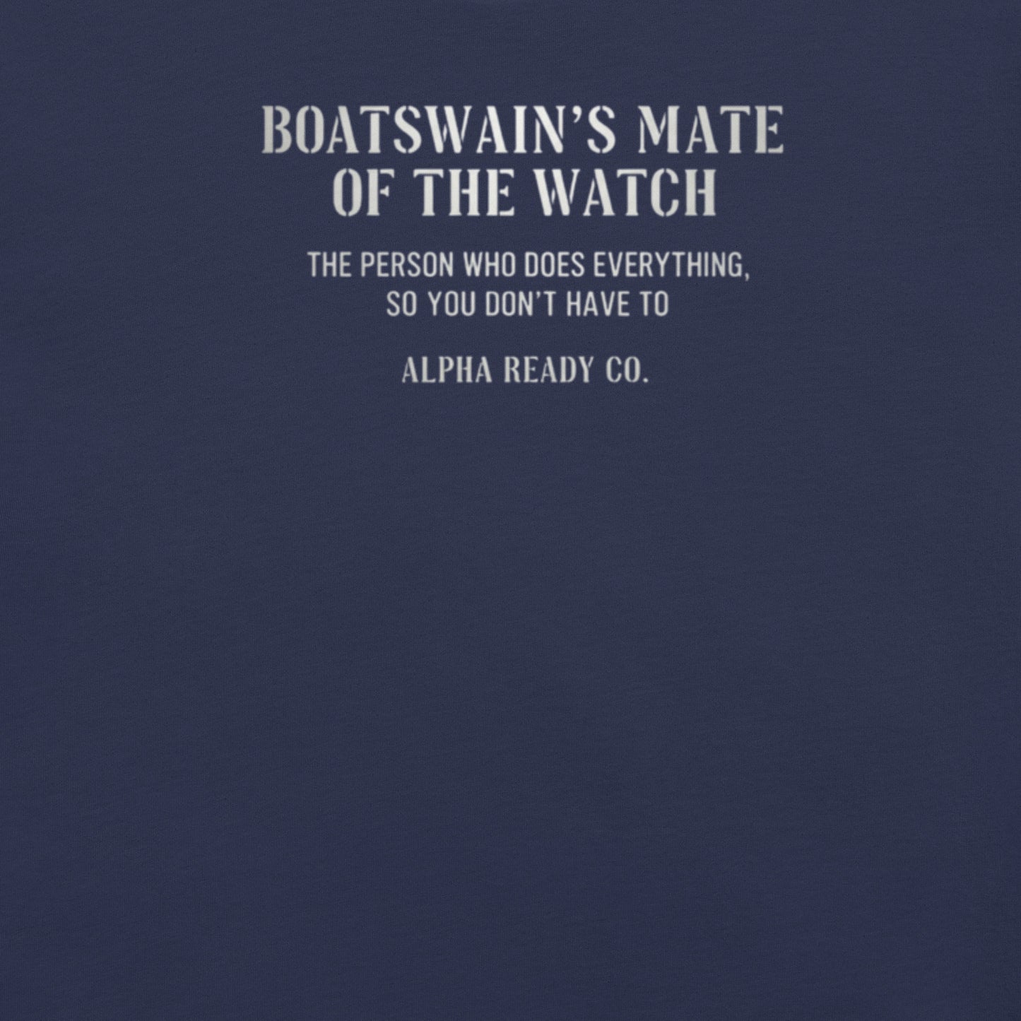 The front boldly states the title: "Boatswain's Mate of the Watch," followed by the hard truth of the job: "The person who does everything so you don't have to."