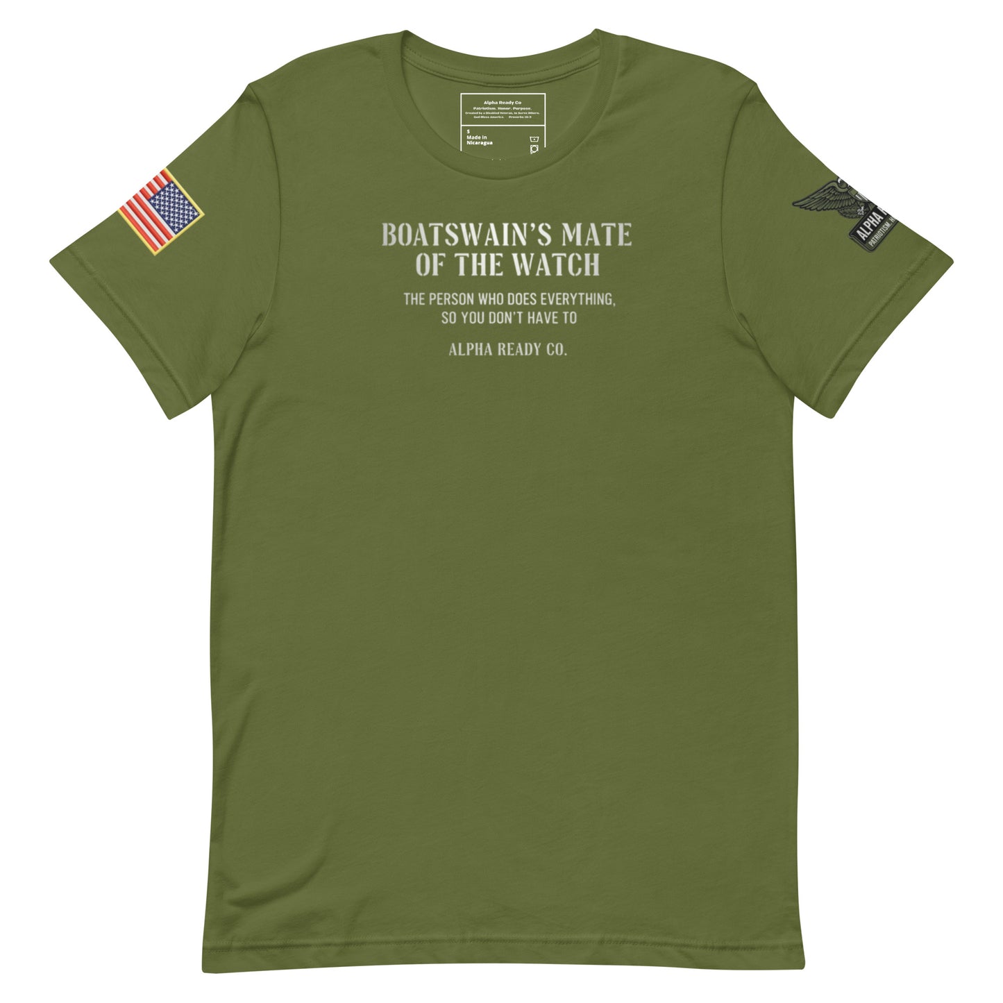Every crew needs the one who keeps the ship running—the tireless essential who makes the complex look easy. This shirt celebrates the Boatswain's Mate of the Watch (BMOW), the deck plate manager and heartbeat of the ship.