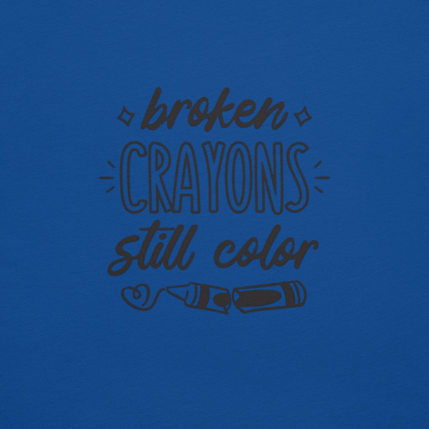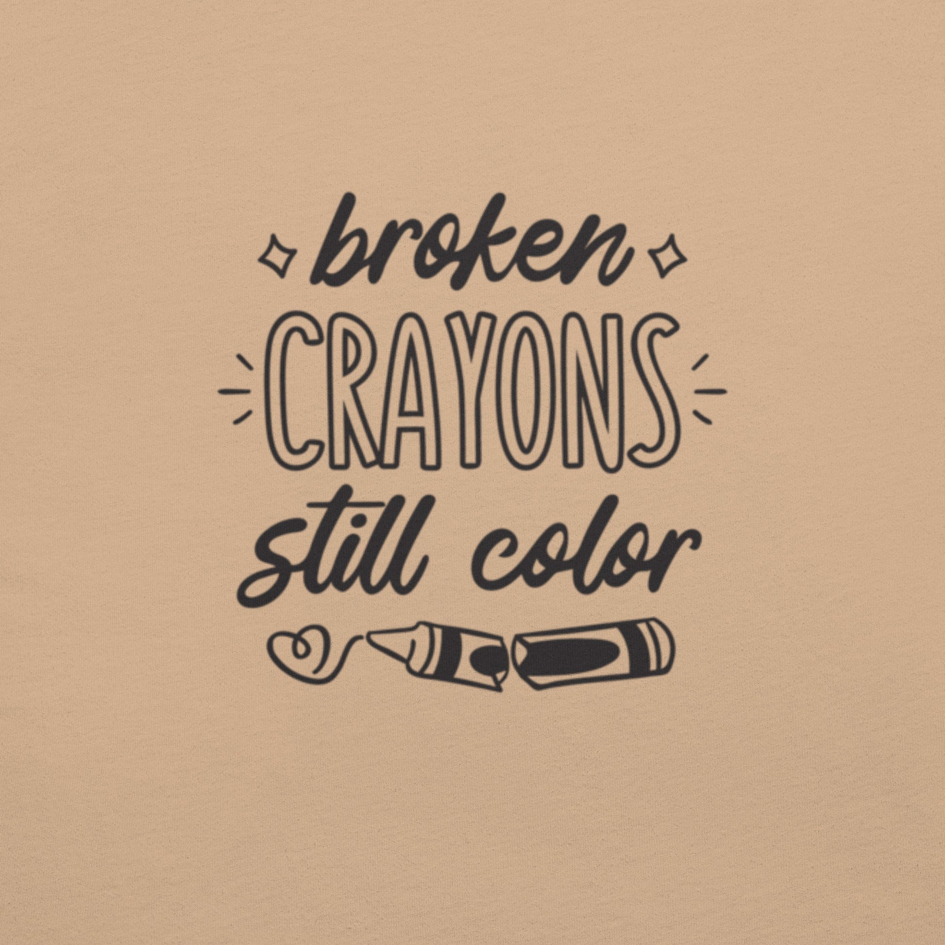 * Back: Boldly displays the powerful, hopeful message: "BROKEN CRAYONS STILL COLOR".