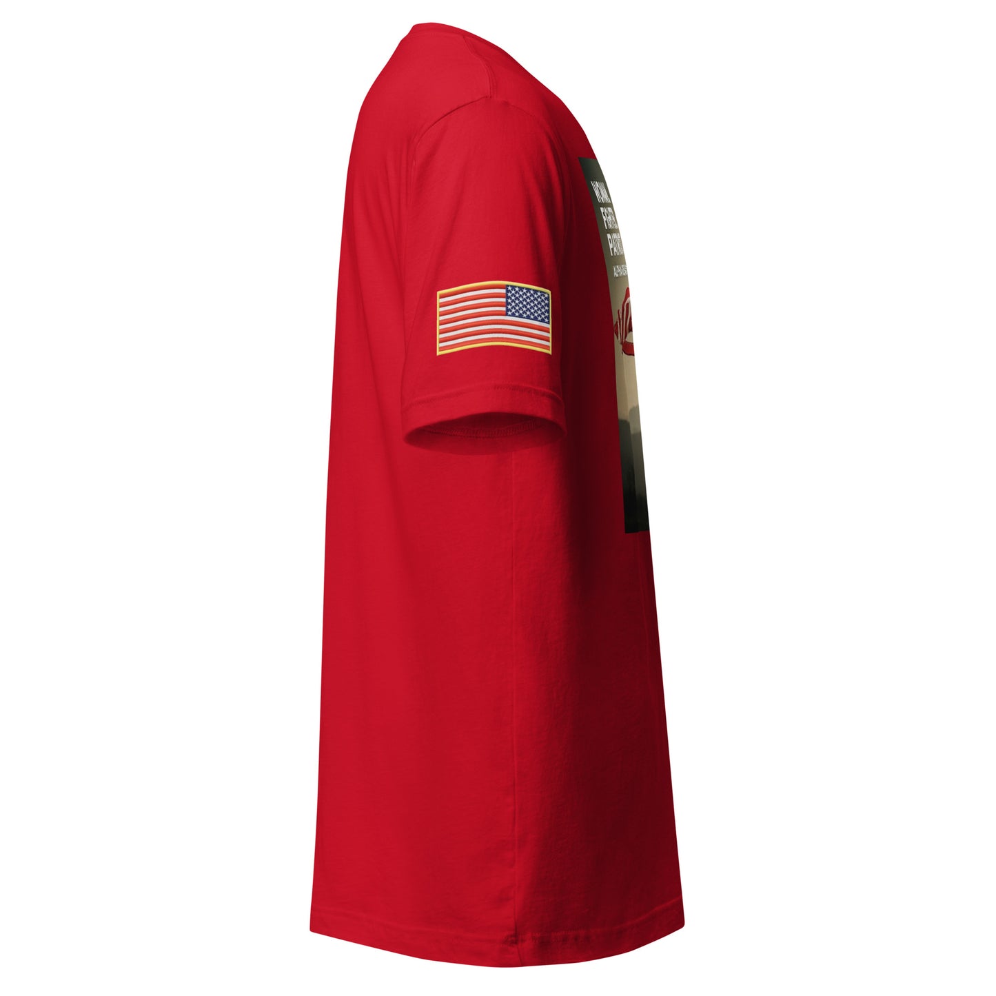 The "Crimson Flight" shirt is a powerful tribute to those who soar above and fight on the ground with passionate resolve.