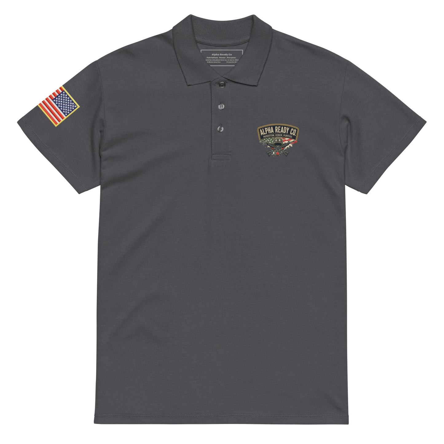 Ready for deployment in any arena. The Frontline Polo by Alpha Ready Co. is designed for those who live the ethos of Patriotism, Honor, and Purpose.