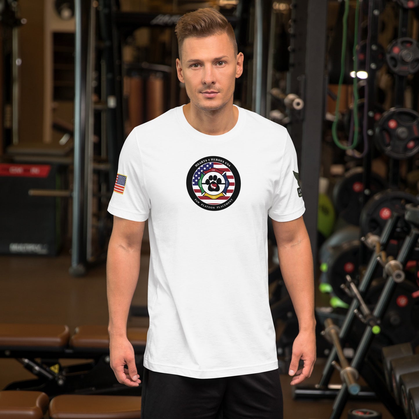 This September 2025, we're putting our profits where our heart is with the "Hearts 4 Heroes USA" shirt. The front proudly displays the Hearts 4 Heroes USA logo, a flag and paw print that represents their powerful mission.