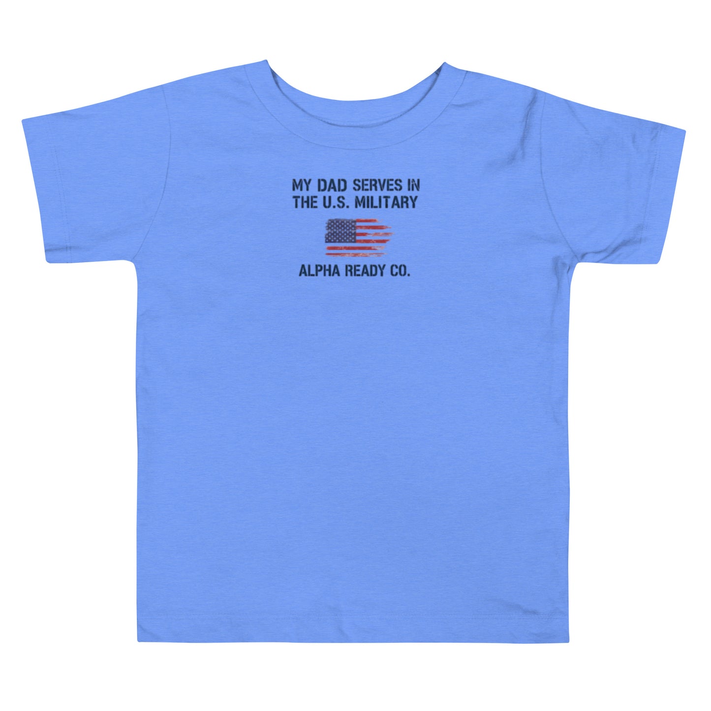 A heartfelt tribute to military dads! This youth shirt is a proud way for your child to honor their father's service. Featuring the message "My Dad Serves in the U.S. Military," this shirt is a simple yet powerful statement of pride and support for military families.