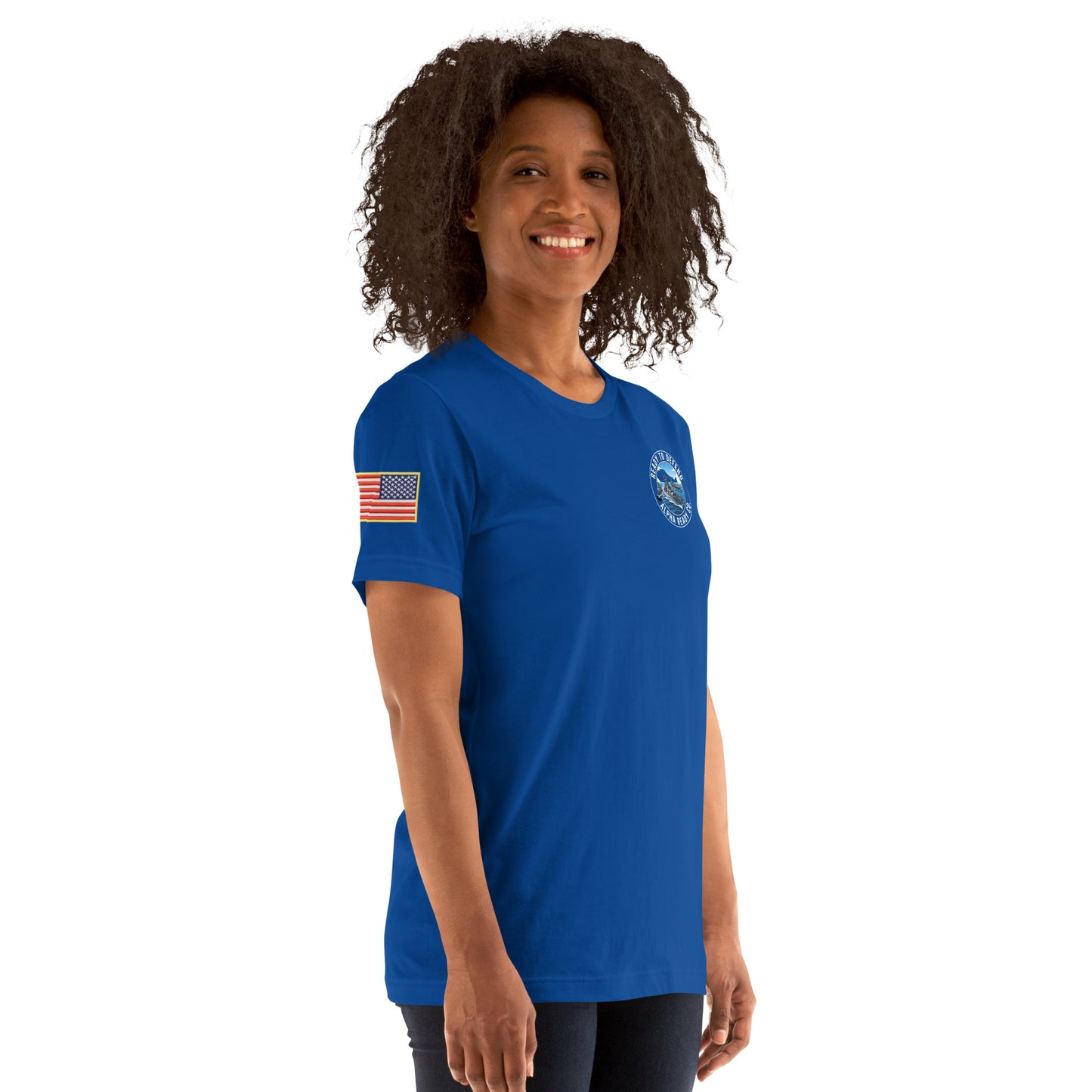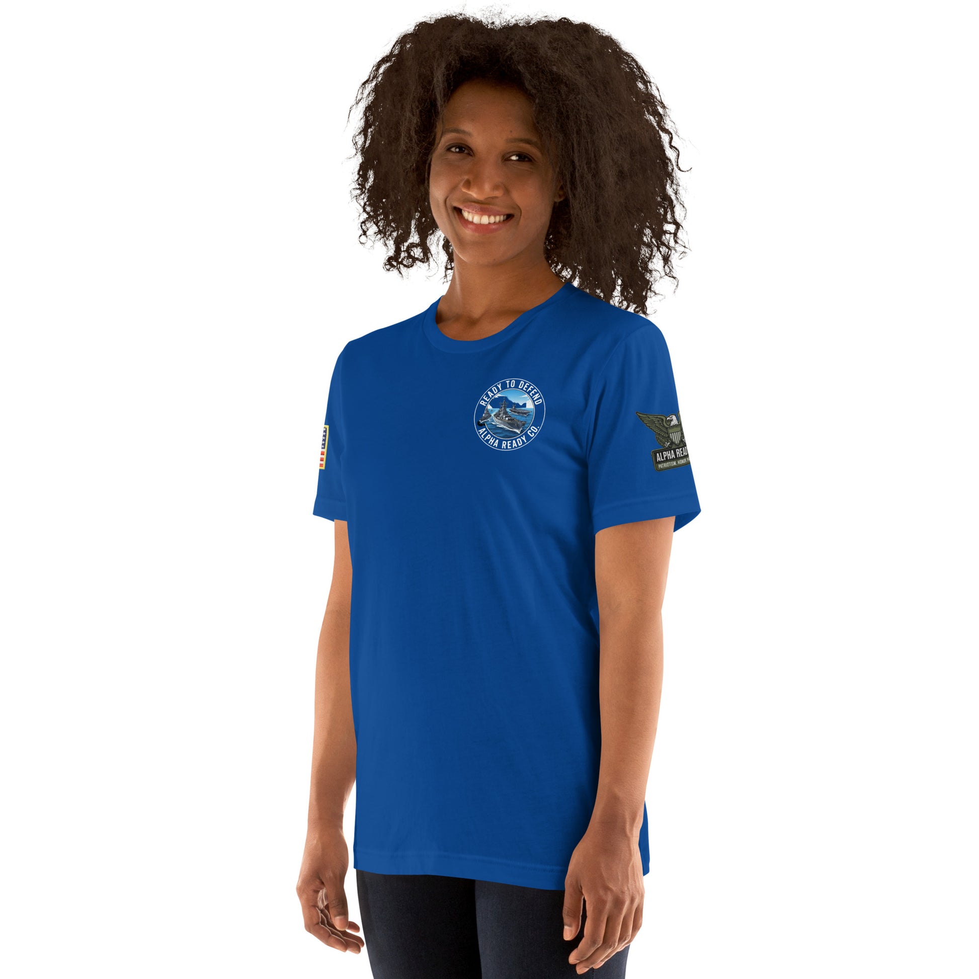 To further amplify its patriotic spirit, the American flag is boldly printed in color on the right sleeve, while our distinctive Alpha Ready Co. logo adorns the left.