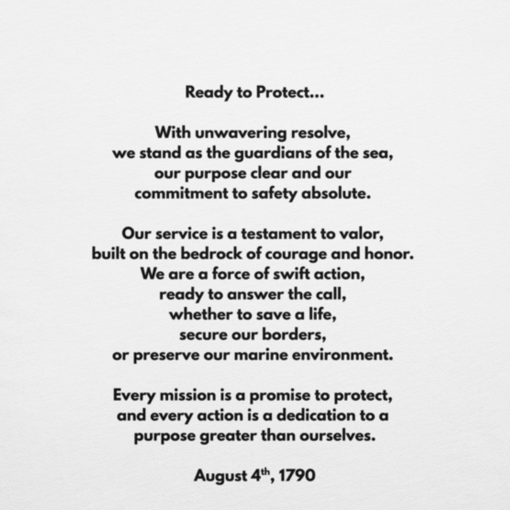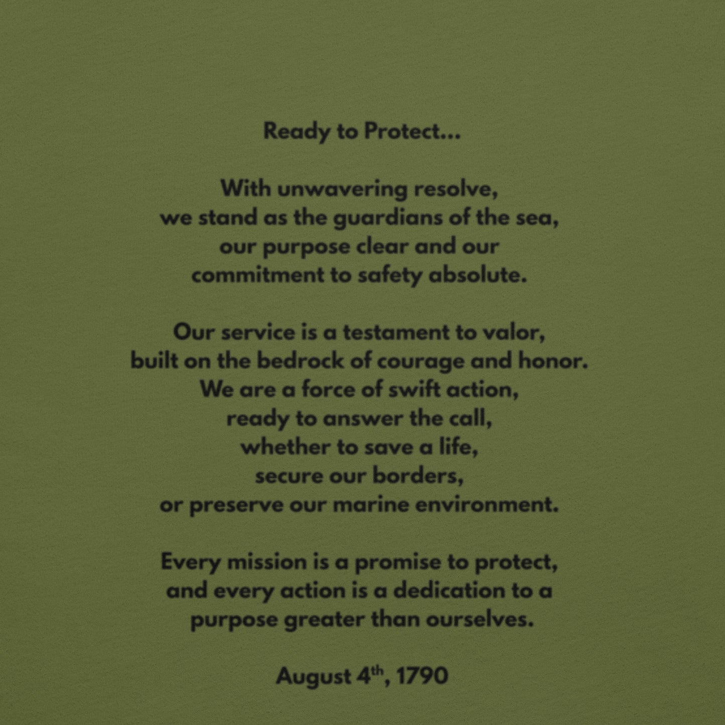 From veteran-owned clothing company, Alpha Ready Co., comes the "Ready to Protect" shirt—a tribute to those who stand as Guardians of the sea.
