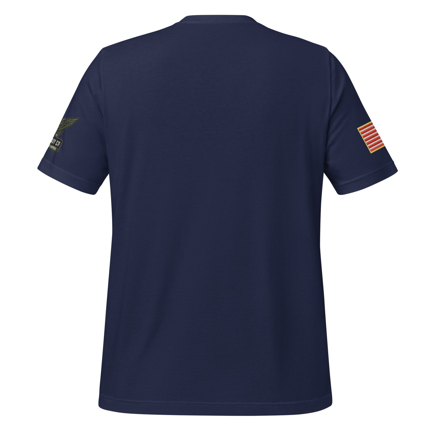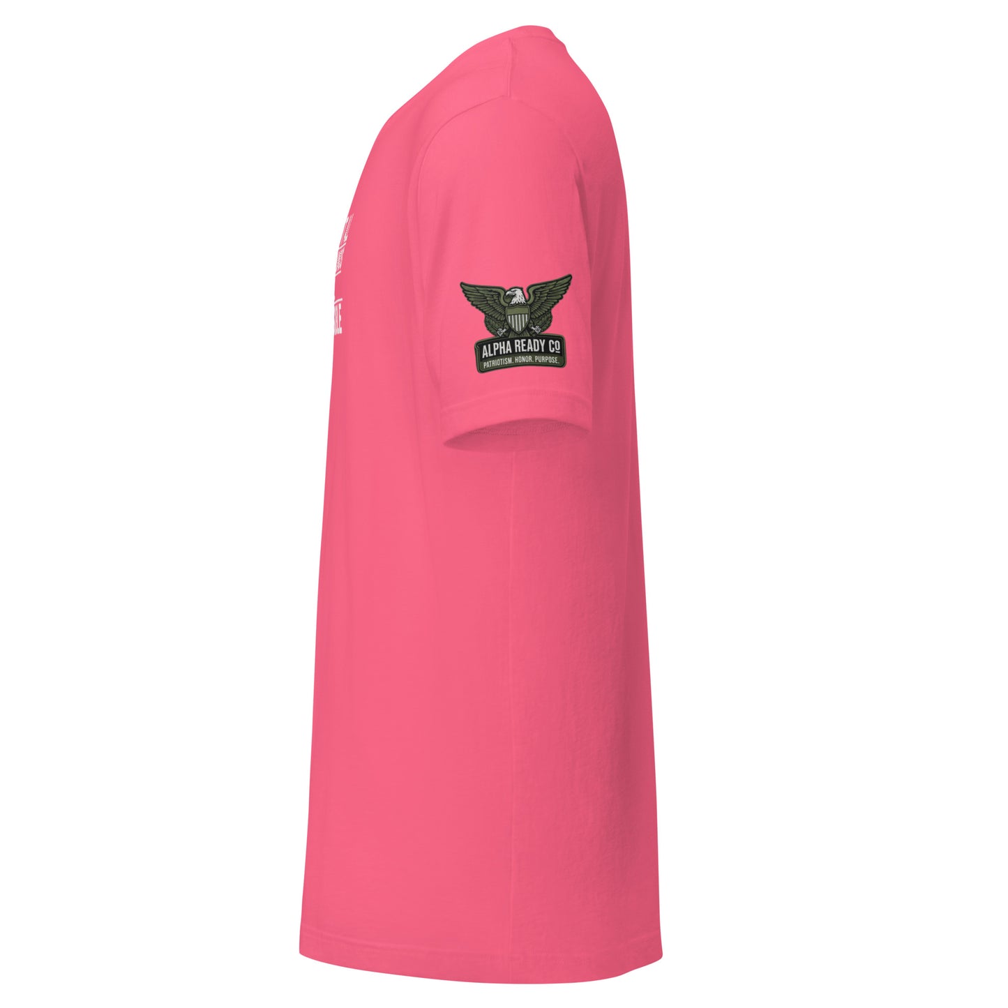 To further amplify its patriotic spirit, the American flag is boldly printed in color on the right sleeve, while our distinctive Alpha Ready Co. logo adorns the left.