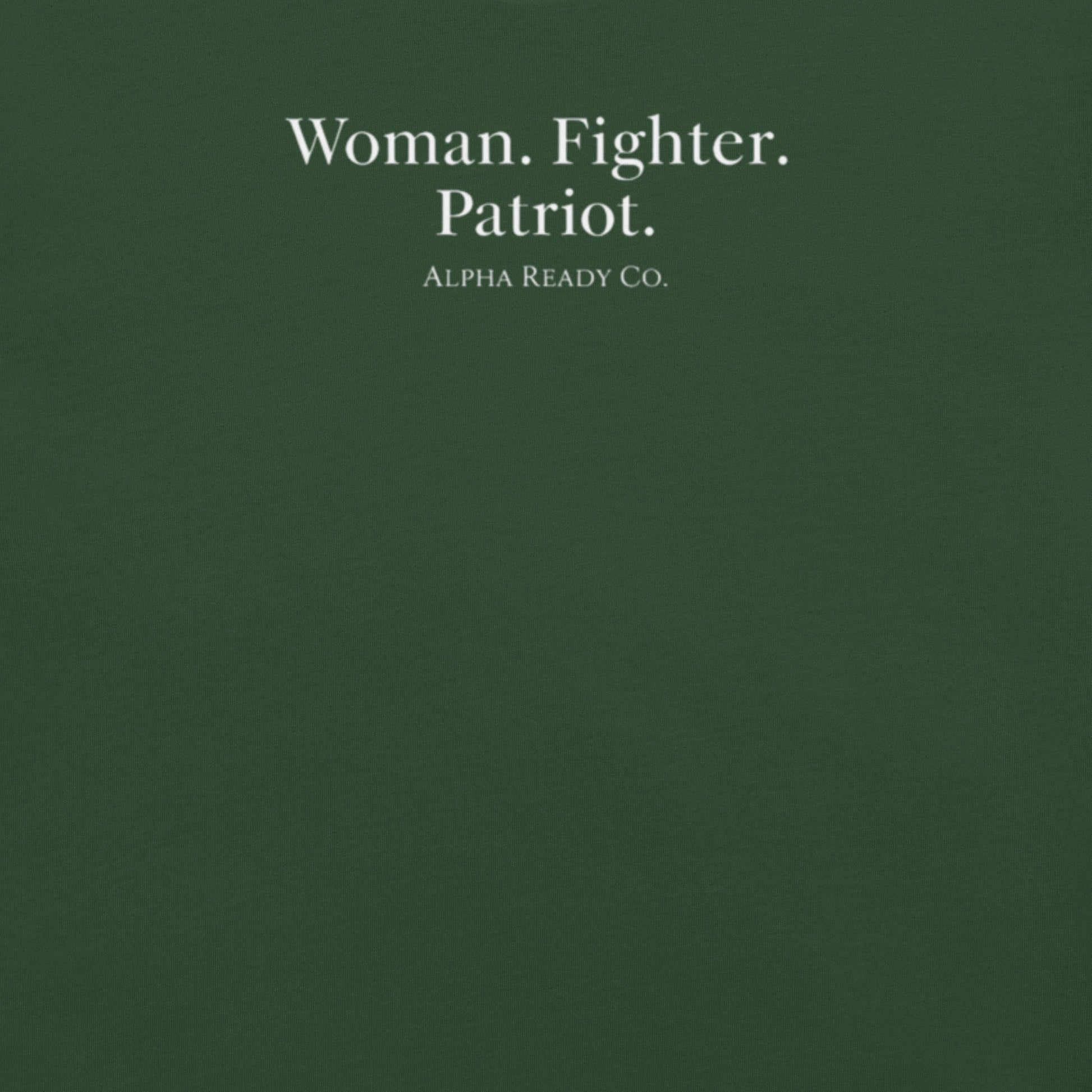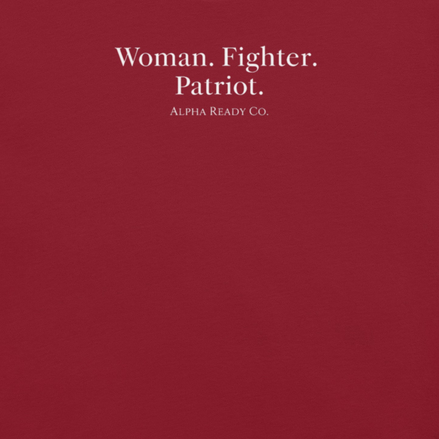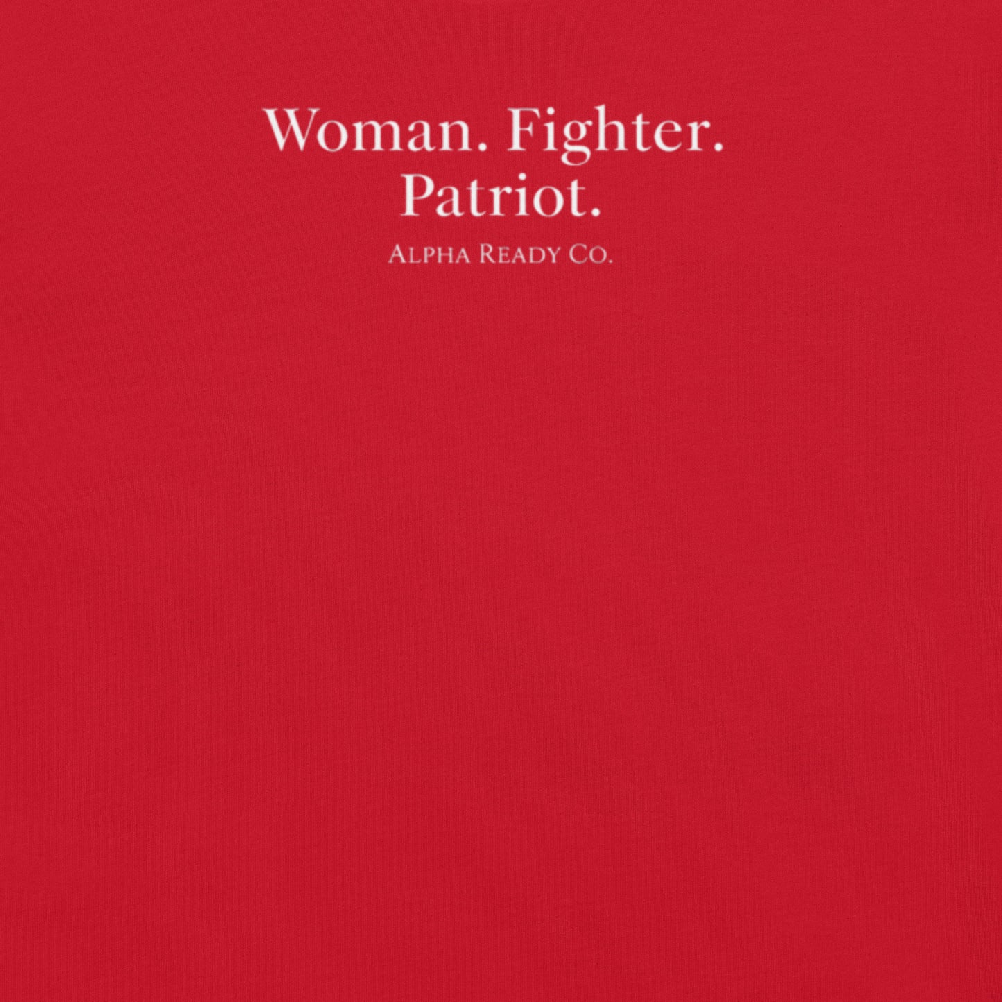 With its bold, unmistakable statement, it proudly declares you are a woman, first and foremost—a core identity that carries a unique and unwavering strength. That strength is shaped by the spirit of a fighter and fueled by the heart of a patriot.
